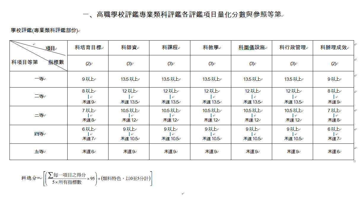 - 高職學校評鑑專業類科評鑑各評鑑項目量化分數與參照等第