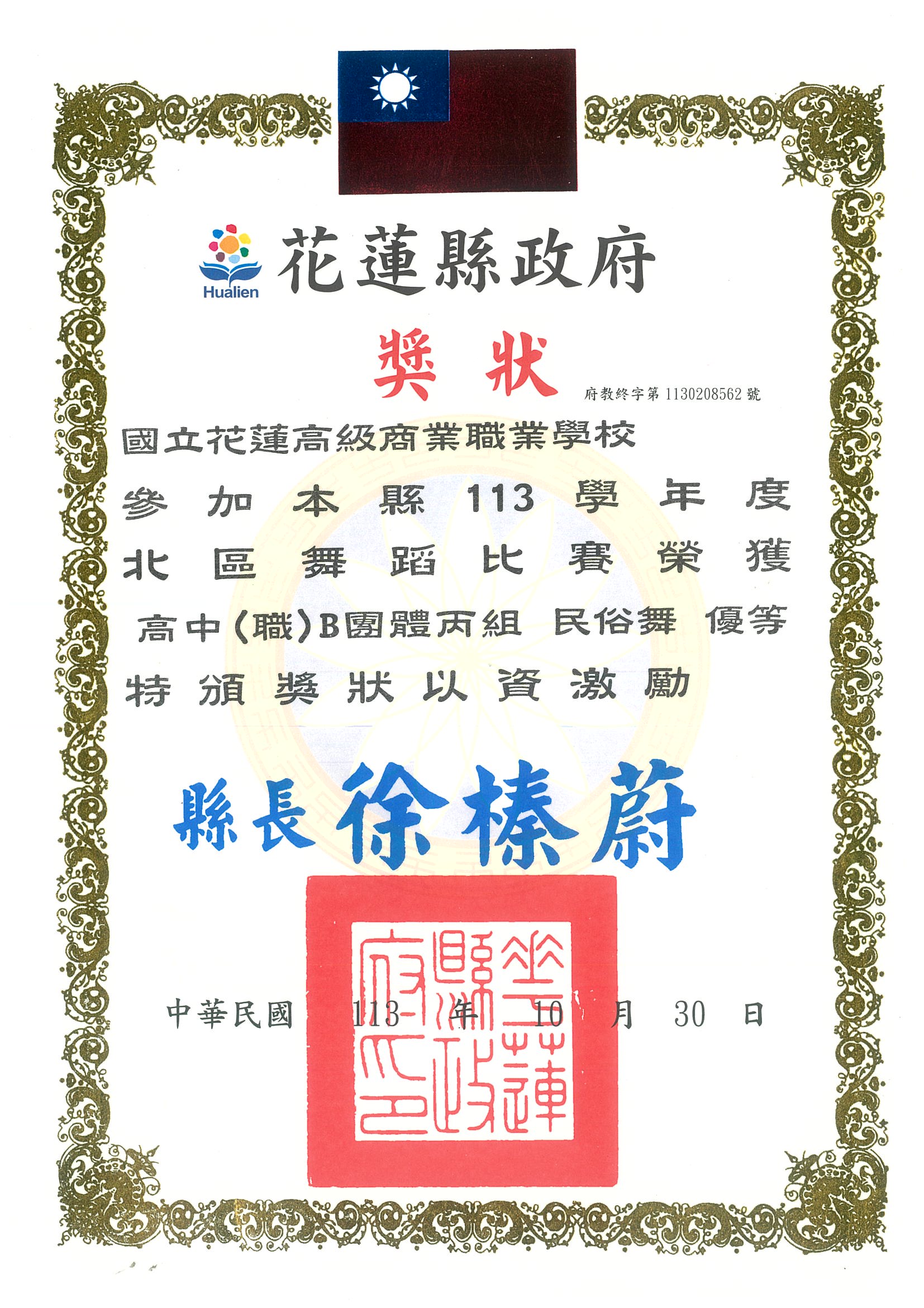 原舞社 參加花蓮縣113學年度北區舞蹈比賽 榮獲高中(職)B團體丙組 民俗舞 優等 | ![]() |