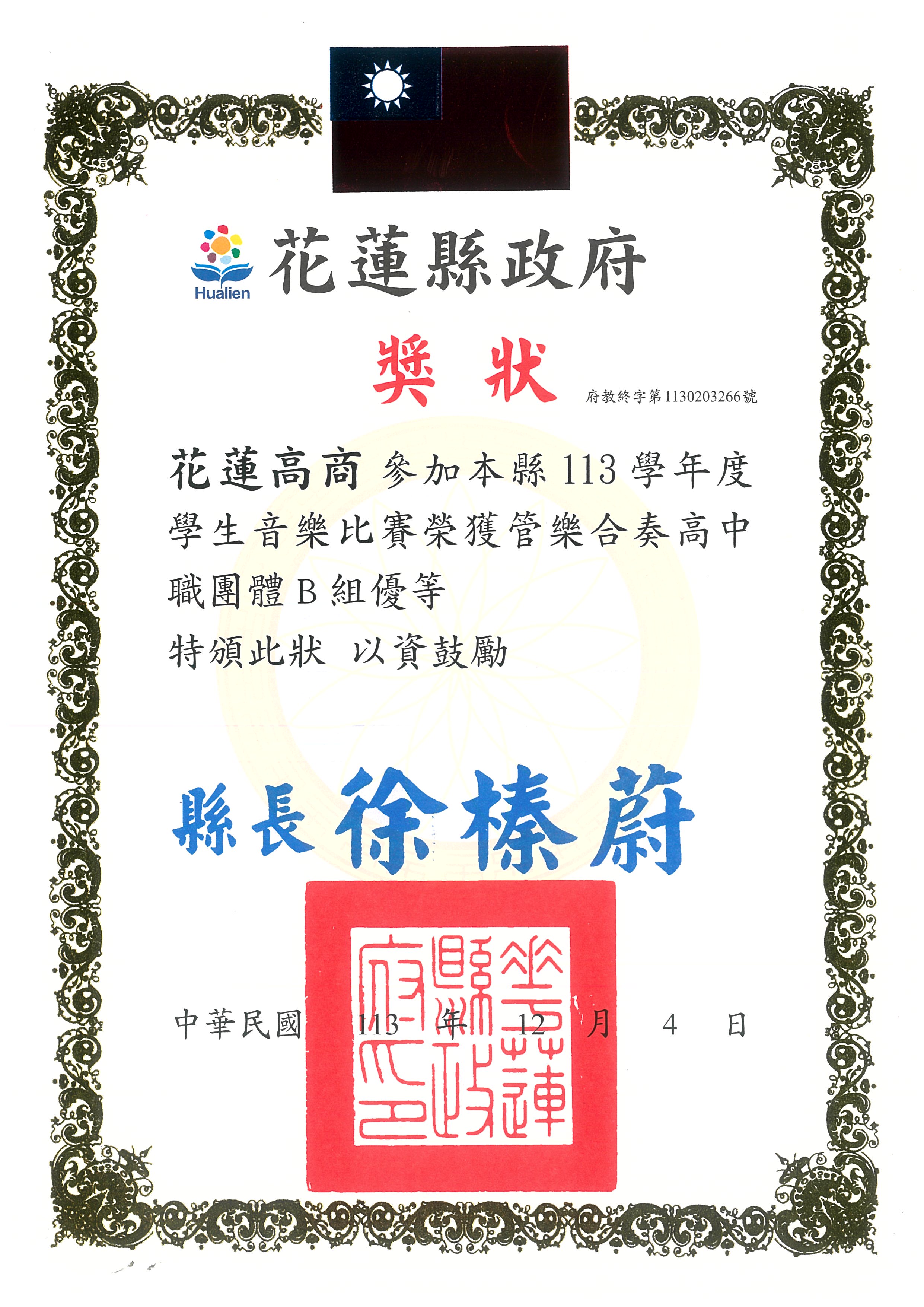管樂社 參加花蓮縣113學年度學生音樂比賽榮獲管樂合奏高中職團體B組榮獲優等 | ![]() |