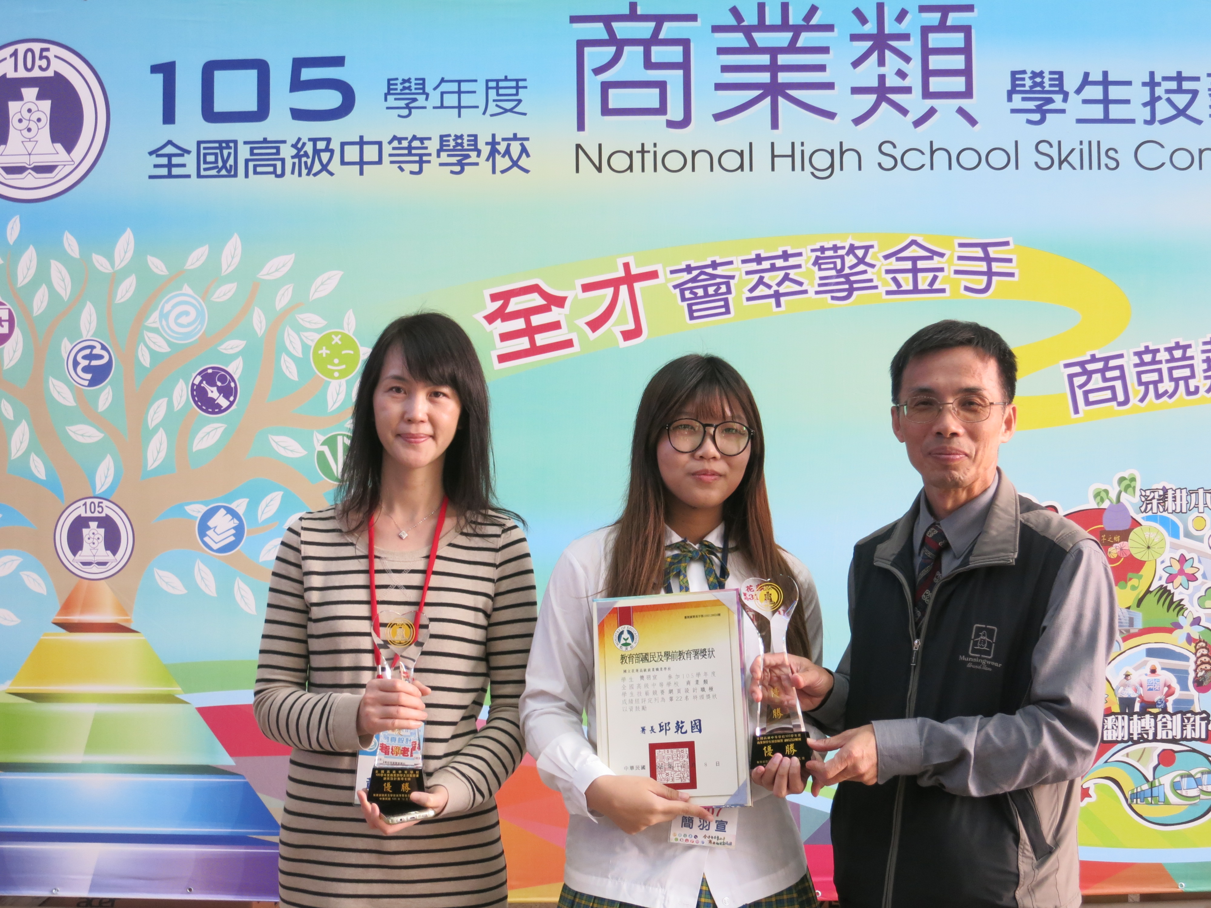 | 94學年全國技藝競賽文書處理組 團體組第7名 資三乙 蘇珮瑜 資三丙 駱芳盈 張美惠老師 | |