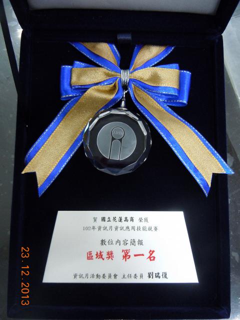 102年度資訊月資訊應用技能競賽數位內容簡報: 資三甲徐瑩芷、商三甲張馨、資三乙古鈺瑄、英三乙李昀展 1. 北區團體組[第1名] 2. 北區個人組:資三甲徐瑩芷(第2名)、商三甲張馨(優勝) 指導老師:李翠華 | ![]() |