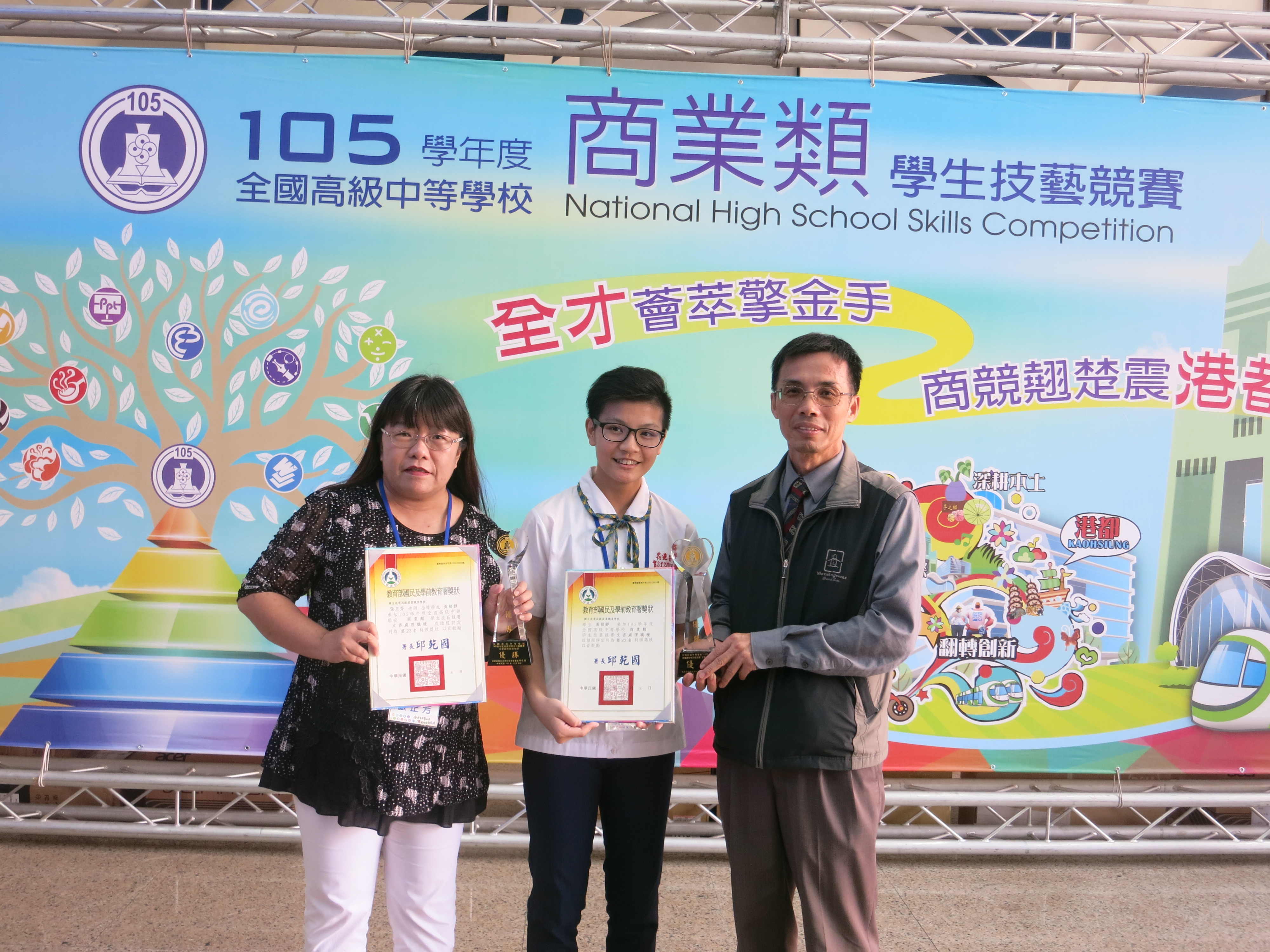 105年全國技藝競賽 文書處理組第23名 會三甲 黃郁靜 指導老師:張正芳老師 | ![]() |