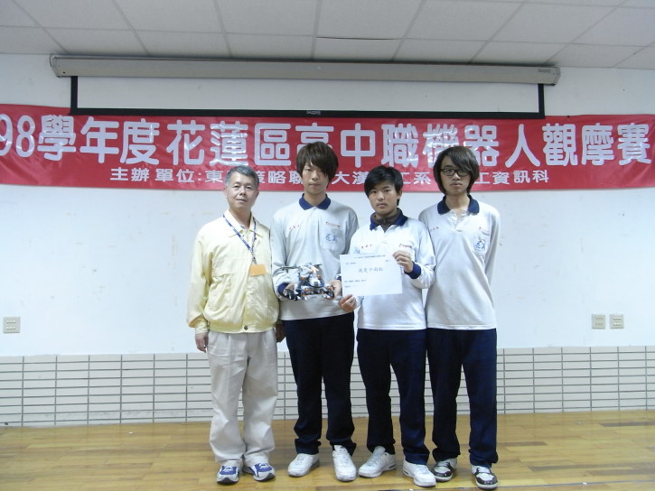 | 98學年東區機器人觀摩賽 第三名 資二丙 楊耀丞、資二丙 翁聖惟 資二甲 馮天宏 指導老師:官孟璋老師 | ![]() |