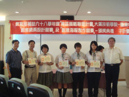 | 98學年東區慈濟多媒體競賽(99/05/20) 本校榮獲第三名,佳作三名 第三名 資一甲 羅悅玲、資一甲 張瑞君 佳作 資一乙 詹佳宜、資一乙 陳映君 資一甲 黃致娞、資一乙 曾柔倩 資一乙 陳偉銘、資一乙 蕭伊芸、資一甲 陳品元 | ![]() ![]() |