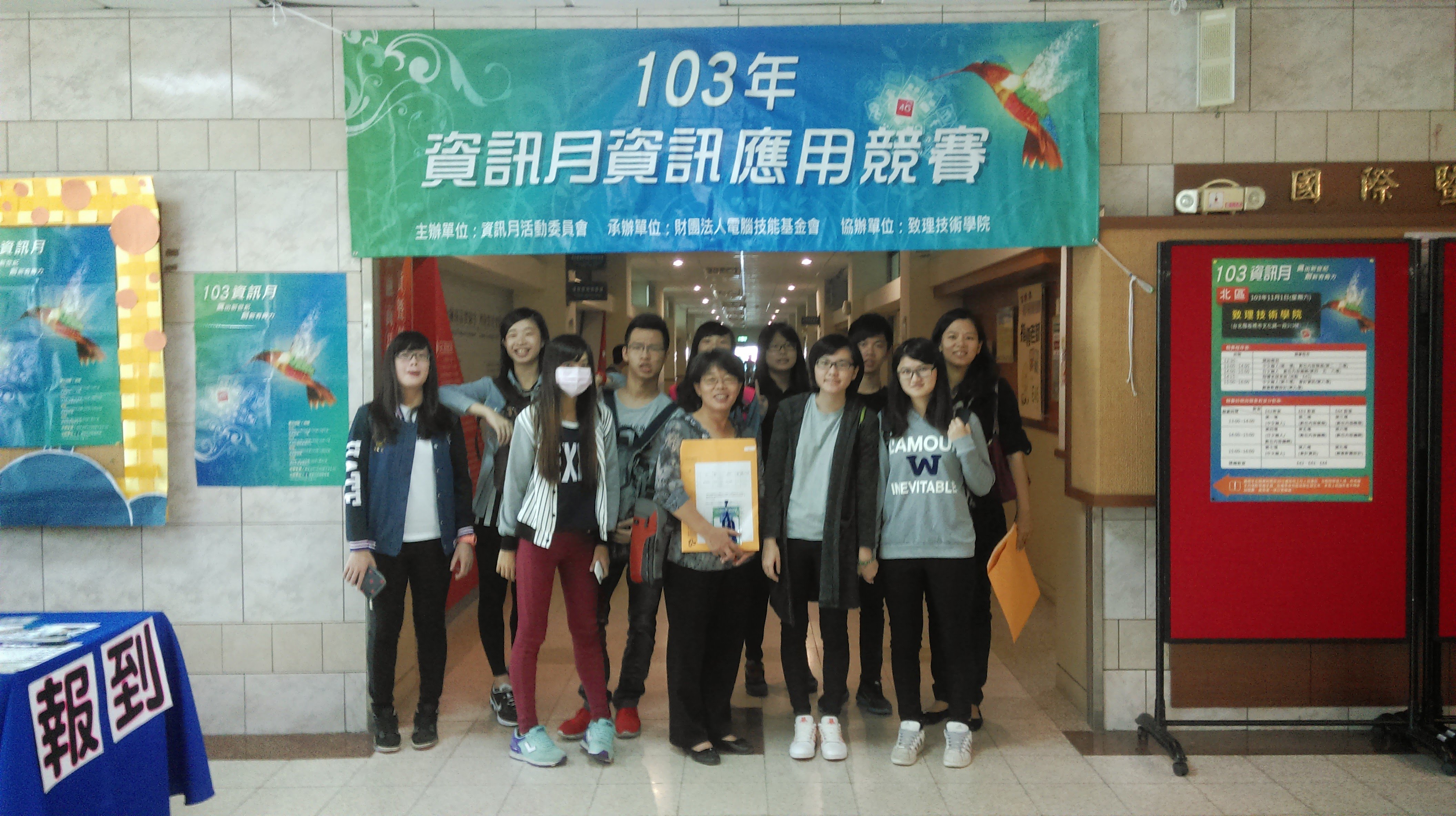 參加全國高職學生102年度商業與管理群專題製作競賽 時間:102年5月10日~102年5月12日 地點:台灣師範大學 參賽學生名單:商三乙 謝惟芯、孫詩萍、蘇儀君、 劉星妤、洪嘉璘、周郁恩、林以涵 |